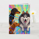 Carte De Vacances Métallisée Chiens Chiots avec fond arc-en-ciel