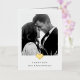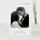 Cette carte de remerciements simple et élégante en noir et blanc présente deux de vos photos de mariage préférées, avec un coeur élégant en feuille d'or et de la place pour votre message personnel à l'intérieur. Un design moderne et minimaliste avec une touche glamour.