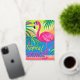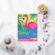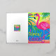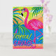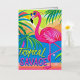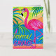 Carte De Vacances Métallisée Flamingo rose Position tropicale sur une jambe