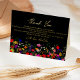 Ajoutez une touche d'élégance bohème à votre carte de remerciement avec notre design chic et moderne de fleurs sauvages colorées et élégantes. Caractérisé par des teintes roses, rouges, vertes et violettes, fleurs botaniques inspirées des fleurs sauvages et des jardins rustiques aquarelles avec une verdure subtile et une typographie moderne et script bohème. Caractérisé par un véritable foil sur fond noir modifiable.