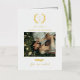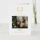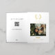 Papier doré monogrammé plié personnalisé avec photos et votre code QR. Faire-part de mariage plié avec un monogramme en feuille d'or, des photos du couple heureux, une élégante formulation de typographie d'invitation à l'intérieur, et votre code QR et votre site web mariage à l'arrière.