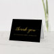 Cette carte de remerciement de mariage utilise une écriture métallisée à feuille d'or véritable dans une calligraphie élégante de type script sur fond noir. Moderne, chic et sophistiqué. Personnalisez cette carte de mariage avec les noms des nouveaux Monsieur et Madame. Incluez la date du mariage et un message de vœux personnalisé venant du cœur. Montrez à vos invités de mariage votre gratitude sincère et incluez une photo spéciale à l'intérieur de ce grand jour qui sera chérie et les ramènera à votre célébration.