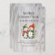 Aquarelle rustique Joyeuse carte de Noël avec deux bonhomme de neige contre un arrière - plan en bois rustique. Personnalisez facilement cette carte de vacances avec votre nom de famille et votre texte.