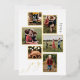 Cette carte de vacances amusante présente de véritables cadres en feuille d'or autour de 6 photos dans un mélange de formats verticaux, horizontaux et carrés pour une polyvalence maximale. Un vrai mot manuscrit en feuille d'or "Joy" accentue agréablement les photos. L'arrière a de l'espace pour une photo supplémentaire et des salutations de vacances plus longues.