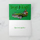 Un joli dessin humoristique personnalisable d'un Père Noël afro-américain à cheval dans le style et portant des cadeaux dans un vintage vert convertible Cadillac avec capot en bois chromé !