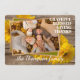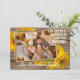 Unique, classe, tendance, jolie et décorative carte de vacances Thanksgiving. Unique, classe, tendance, jolie et décorative carte de vacances Thanksgiving. MERCI BEESSED BIEN DIFFUSER MERCI texte et espace pour customiser ou personnaliser avec une photo et les noms (ou nom de famille) de votre choix. Avec la jolie classique de la chute jaune chaude Fleurs de maman sur un look patiné gris rustique maison de ferme inspirée de planches en bois d'écorce design arrière - plan motif. Et une saison personnalisable saluant poème sur le dos de la carte.