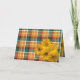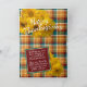 Unique, classe, tendance, jolie et décorative carte de vacances Thanksgiving. MERCI BEESSED BIEN DIFFUSER MERCI texte et espace pour customiser ou personnaliser avec une photo et les noms (ou nom de famille) de votre choix. Avec les fleurs de mignonette classique de la chute jaune Mums sur un bleu turquoise vert, orange citrouille et vin bordeaux foncé rouge couleur rouge rustique de la ferme inspiré plaid tartan motif design arrière - plan. Et une saison personnalisable saluant poème à l'intérieur de la carte.