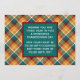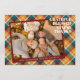 Unique, classe, tendance, jolie et décorative carte de vacances Thanksgiving. Unique, classe, tendance, jolie et décorative carte de vacances Thanksgiving. MERCI BEESSED BIEN DIFFUSER MERCI texte et espace pour customiser ou personnaliser avec une photo et les noms (ou nom de famille) de votre choix. Avec les fleurs de mignonette classique de la chute jaune Mums sur un bleu turquoise vert, orange citrouille et vin bordeaux foncé rouge couleur rouge rustique de la ferme inspiré plaid tartan motif design arrière - plan. Et une saison personnalisable saluant poème sur le dos de la carte.