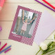 Belle carte de la journée de la famille avec un cadre photo avec de petites fleurs mignonnes sur le devant sur fond rose uni. Au dos de la carte, il y a un beau message pour votre famille.