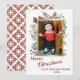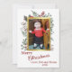 Cette belle carte de Noël minimaliste comporte un cadre en faux or au centre où vous pouvez télécharger votre photo préférée. Autour du cadre, une variété de plantes botaniques et de baies, y compris le pin, le coton et l'eucalyptus. Le verso présente un motif festif de poinsettias rouges et verts.