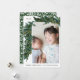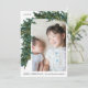 Couronne de pin verte rustique avec motif botanique blanc au dos Carte de Noël de vacances photo.