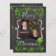 Un tableau de bord arrière - plan avec de beaux rouleaux de vert avec des étoiles rouges et le texte blanc qui dit "Joyeux Noël" sur le devant et "Que tous vos jours soient joyeux et lumineux" sur le dos. Cette belle carte photo de Noël customisée a plusieurs ornements étoiles, et un oiseau dans une conception de nid et des zones que vous pouvez facilement ajouter vos noms, l'année en cours, et la photo!