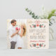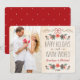 Ajoutez votre photo préférée à ces élégantes et belles cartes de vœux sur le thème de Noël et d'hiver avec des pommes de pin et un aspect formel et vintage rétro et antique. Pommes de pin givrées, roses et fleurs de Noël roses, rouges et blanches à l'aspect aquarelle et peint, glands enneigés et baies de houx composent une jolie couronne de laurier d'hiver. Des fioritures dorées, des volutes et un nœud en ruban rouge complètent son aspect festif. Dos à pois rouges et blancs. Veuillez contacter chrissyh@chrissyhstudios.com si vous avez besoin d'aide pour organiser ou formater le texte sur le recto ou le verso de cette carte. Œuvre © Chrissy H. Studios, LLC. Tous droits réservés.