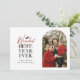 Année la plus étrange Jamais, carte photo humour de vacances. Caractéristiques de la carte, accent OVNI mignon avec support motif de vérificateur rouge et blanc.