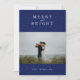 Élégante et simple carte de vacances photo avec des étoiles blanches sur fond bleu festif, "Joyeux et lumineux"