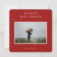 Élégante et simple carte photo avec des étoiles blanches sur fond rouge festif "Joyeuses Fêtes" .