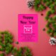 Bonne année ! Un nouveau départ. Un nouveau départ. Fêtes pour célébrer ce Janvier et pour annoncer aussi votre entreprise. Carte de vacances personnalisable en feuille que vous pouvez mettre votre marque d'affaires, vos produits ou services et avec l'accueil du Nouvel An. Vous pouvez mettre jusqu'à 4 produits. Customisez-le et utilisez-le comme matériel marketing pour annoncer votre marque et promouvoir vos produits ou services d'affaires. Carte de vacances Foil que vous pouvez utiliser pour construire la sensibilisation de marque. Les couleurs design sont du papier doré et des textes blancs sur arrière - plan rose. Pour customiser cette carte de vacances, téléchargez votre logo d'entreprise, des images de vos produits ou services, tapez votre nom d'entreprise, les noms de vos produits ou services, l'adresse, le numéro de téléphone, le courriel et le site Web ou votre page de médias sociaux professionnels. Bonne année ! Je vous souhaite plus de ventes ce jour férié et les années à venir.