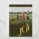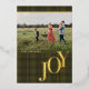 Partagez la JOIE avec la famille et les amis avec cette carte de vacances photo simple à carreaux. Elle présente un fond à carreaux traditionnel et un message de JOIE moderne en typographie avec une vraie feuille métallisée. Personnalisez avec une vraie feuille d'or, une feuille d'argent ou une feuille de rose doré. Personnalisez cette carte plate avec votre nom, année et photo horizontale personnalisée sur le devant. Choisissez parmi un large éventail de types de papier. Sélectionnez la carte rectangulaire de 5" x 7" ou ajoutez une forme de bordure découpée. Des articles assortis sont disponibles. Parfait pour votre carte d'automne, de Noël à la campagne ou de vacances.
