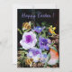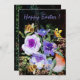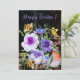 Trouvez cette jolie carte de vacances orientale avec des roses et des fleurs bleues violettes sur un fond noir avec des nuances de rose et de vert.