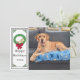Personnalisez ce modèle de carte de vacances avec une illustration d'un doux chiot Labrador jaune endormi au milieu d'une couronne de Noël avec votre propre photo de famille (ou même celle de votre bébé à fourrure). Au dos, vous pouvez écrire votre propre message de vacances pour tout le monde, et n'oubliez pas de mettre votre nom sur le devant de la carte.