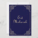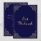 Carte de vacances plate islamique musulmane Eid Mubarak. Eid al-Fitr. Fond bleu marine foncé classique avec un rouleau doré victorien et une police de caractères de luxe. Vous pouvez personnaliser la couleur de fond et changer le type de police également. Types de papier disponibles au choix.