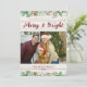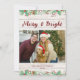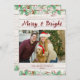 Carte de Noël photo en bois de grange blanc Merry & Bright. Le devant de la carte présente un fond en bois de grange blanc rustique, lui donnant une atmosphère chaleureuse et confortable de maison de ferme. Merry & Bright sont écrits élégamment en script en haut, où le haut et le bas présentent des baies de houx. Le centre de la carte est une photo de famille classique avec un cadre rouge. La photo de famille capture un moment joyeux, répandant l'amour et la joie. Le dos de la carte continue le fond en bois de grange blanc avec des baies de houx créant une atmosphère cosy avec une citation sentimentale et les noms de famille.