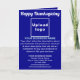 BON THANKSGIVING ! Fête à remercier pour les bénédictions que nous avons reçues. Vacances pour fêter ce Novembre et pour annoncer également vos produits ou services d'affaires à des clients ou clients. Vacances pour promouvoir votre marque. Carte de vacances pliée Thanksgiving personnalisable que vous pouvez mettre votre marque d'entreprise, produits ou services et d'autres informations de votre entreprise. Carte pour accueillir vos clients ce Thanksgiving et comme brochure pour votre entreprise. Vous pouvez mettre jusqu'à 3 produits. Customisez-le et utilisez-le comme matériel de marketing pour annoncer vos produits ou services d'affaires et pour promouvoir votre marque. Carte de vacances que vous pouvez utiliser pour sensibiliser la marque. Les couleurs design sont des textes bleu clair et blanc sur arrière - plan bleu. Pour customiser cette carte de vacances, téléchargez votre logo d'entreprise, des images de vos produits ou services, tapez votre nom d'entreprise, une brève description attrayante de votre entreprise et de vos produits ou services, le nom de vos produits ou services, l'adresse, le numéro de téléphone, le courriel et le site Web ou votre page de médias sociaux d'affaires. Veuillez vérifier l'apparence sur tous les côtés après avoir téléchargé le logo, les images et les textes de saisie. Si l'apparence vous plaît, vous pouvez passer votre commande maintenant. Si vous avez besoin de redimensionner et déplacer le logo, les images et les textes pour tenir sur cette carte de vacances ou sur la taille que vous choisirez, s'il vous plaît changer dans l'outil de conception. Vous pouvez également modifier la couleur arrière - plan, la couleur de police et le style de police dans l'outil de conception. BON THANKSGIVING ! Je vous souhaite plus de ventes cette saison des Fêtes.