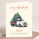 Une carte de vœux de Noël festive 5x7 pliée avec le titre joyeux « Joyeux Noël à vous » dans une typographie manuscrite rouge moderne associée à un graphique vintage inspiré d'un camion de livraison de sapin de Noël. Conçue sur un fond crème vintage, cette carte de vœux rétro élégante combine un charme nostalgique avec une mise en page minimaliste moderne. Personnalisez la section « avec amour de » et en dessous avec le nom de votre famille dans une typographie complémentaire pour un toucher chaleureux et personnalisé. Parfaite pour partager l'amour et les vœux de vacances, ce design amusant et classique non-photo ajoute de la personnalité à la saison tout en répandant la joie festive. Un design de Noël intemporel idéal pour les familles, les individus et les couples.