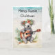 Répandez la joie d'un Noël australien avec cette carte unique et festive avec une illustration charmante d'un mignon ours koala sur une plage baisée au soleil jouant de la guitare. Cette carte capture l'essence d'un Down Under Christmas. Les couleurs vibrantes et le design ludique vous apporteront un sourire aux visages de vos amis et de votre famille.