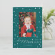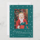 Ce carte photo de vacances personnalisable propose un arrière - plan vert foncé et festif et traditionnel, une bordure de pompons étoilés blancs et des vacances chic et joyeuses autour d'une photo unique pour une sensation haut de gamme et luxueuse.