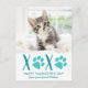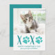 XOXO ! Envoyez de beaux voeux de vacances avec cette adorable photo de animal de compagnie xoxo valentines carte avec des empreintes de pattes dans un design moderne de fruits de mer et turquoise. Personnalisez avec votre chaton ou photo de chat préféré et votre nom. Cette XOXO avec une carte de jour valentines design empreinte de patte sera un favori parmi tous les amoureux de les chats. Idéal pour les enfants en classe et les valentines d'école jour. DROIT D'AUTEUR © 2020 Judy Burrows, Black Dog Art - Tous droits réservés. Cuisine Chat Pet Photo Classe Valentine XOXO Carte postale