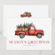 Une carte de vacances minimale et élégante, parfaite pour envoyer des salutations festives à la famille et aux amis. Doté d'un camion rouge rétro aquarelle avec arbres de noël, personnalisez avec votre nom de famille et votre année. Ajoutez votre propre message à l'arrière de la carte pour créer un morceau que vos destinataires aimeront chérir.
