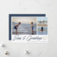 Répandez des vacances joyeuses avec une touche de charme côtier ! Notre carte de vacances pour la famille côtière allie à merveille la chaleur des moments de famille à la beauté sereine de la mer, ce qui en fait la meilleure façon de partager vos souhaits de vacances avec les proches. Caractéristiques du design : Charmante esthétique côtière : La carte présente un motif de coquillage délicieux qui complète son encre bleu marine, évoquant les couleurs apaisantes de l'océan et créant une atmosphère sophistiquée et accueillante. Affichage de trois photos : Montrez vos moments de famille préférés avec la mise en page de trois photos, vous permettant de partager des souvenirs de l'année passée d'une manière qui vous semble personnelle et sincère. Message chaleureux : Le message ludique "Seas & Greeting" saisit l'esprit de la saison, mêlant joie festive et torsion côtière qui résonne aussi bien pour les amoureux de la plage que pour les familles.