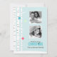 Carte de vacances personnalisées adorable présente une belle illustration vectorielle d'une scène hivernale fantasque de décorations de noël accrochées aux bouleaux sur un bel arrière - plan bleu clair. Personnalisez avec vos photos de famille et un message de votre choix.