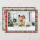 Ami famille de souhaits Joyeux vacances avec un paysage rouge & vert plaid photo de Noël carte de Noël présentant votre famille sur le devant sur une aquarelle rouge et vert motif plaid de Noël, et un côté arrière avec 3 photos de famille et une note modifiable et un joli petit ours en peluche de Noël. Ces cartes de fin de année horizontaux plaid de Noël à 2 faces sont une façon parfaite de partager la joie et les souhaits de vacances heureux saison. La collection BERNARD présente une photo de votre famille avec un message Happy Holidays sur le devant et l'année dans une police serif classique en vert. Un dos est inclus avec trois photos de famille et une note, avec un motif plaid rouge et vert. Un joli ours en peluche de Noël est inclus sur le dos de la carte de vacances rouge et vert plaid dans une orientation paysage.