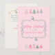 Carte de vacances rose avec ruban festif et arbres