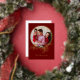 Carte élégante classique rouge pour les fêtes avec photo de famille en feuille métallique. Utilisez les outils de conception pour ajouter votre photo. Retournez la carte et ajoutez votre propre message.
