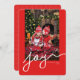 Cette carte de vacances photo moderne et classique est le moyen idéal d'envoyer de la joie pendant cette période des fêtes. Le mot "joie" dans une police manuscrite envoie votre message de joie pour les fêtes ou Noël.