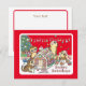 Carte de fêtes rouge plat avec des suricates mignons.
