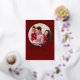 Carte de vacances rouge élégante classique avec photo de famille en feuille métallique. Utilisez les outils de conception pour ajouter votre photo. Retournez la carte et ajoutez votre propre message.
