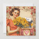 Remontez le temps avec cette carte postale carrée et ludique de la Saint-Valentin, débordant de charme et de couleurs vives des années 50 ! Avec une dame fabuleuse des années 50, des bouquets de roses romantiques, une machine à écrire et une radio vintage.