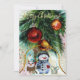 Envoyez des voeux de vacances chaleureux avec cette carte de Noël à la main. Doté d'une charmante scène aquarelle d'un bonhomme de neige sympathique, d'un aigle sage et d'une mignonne souris rassemblée sous un sapin festif orné d'ornements scintillants. Le bonhomme de neige, vêtu d'un casquette aux bois de rennes, tient un balai, ajoutant une touche de fantaisie. Les magnifiques détails d'aquarelle et les couleurs vives en font une carte unique et mémorable pour les amis et la famille. Ce design est parfait pour les familles avec enfants et peut être facilement personnalisé avec votre propre message de vacances et de noms.