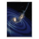 Les galaxies se heurtantes émettent les vagues de la gravité, autrement connues sous le nom d'ondulations dans l'espace-temps. Tandis que considérée d'exister, la détection directe ne s'est pas encore produite. Cette image est une adaptation d'une illustration numérique créée pour la magazine de nature.