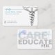 Faites votre impression avec ce carte de visite artistique spécialement conçu pour les femmes professionnels de la santé. Convient aux médecins, infirmières, assistants médicaux, chirurgiens et autres professionnels de la santé. Caractéristiques : - Design simpliste et élégant pour convenir à un professionnel médical. - Couleurs et motifs soigneusement choisis sur l'avant et le dos de la carte. - Texte personnalisable / amovible à l'avant et à l'arrière de la carte.