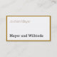 Une page imprimée avec toutes les informations nécessaires qu'une carte de visite devrait contenir, une page imprimée avec une bordure dorée et le nom du cabinet. Discret et pourtant unique, clair dans le message, inhabituel sans être fantaisiste, clair et objectif. Pour les entrepreneurs ayant le sens du style, une attitude claire et beaucoup d'informations. Le bleu foncé, le brun doré et le blanc sont les couleurs dominantes avec une police grotesque sans fioritures. Tous les types de papier conviennent.