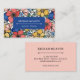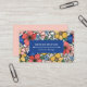Carte de visite florale colorée avec un motif de fleurs en corail, rose, bleu et jaune. Carte de visite vibrante et accrocheuse avec beaucoup de fleurs.