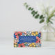 Carte de visite à motif floral jaune bleu corail c