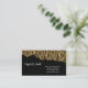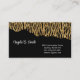 Cette carte de visite est présentée dans un design en déchirure artistique avec une fausse brillance noire et dorée à motif animal.