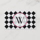 Un carte de visite comportant un arrière - plan à motifs de losanges noir avec l'équilibre rose. Texte noir au-dessus de blanc pur. Personnalisez avec votre information. Caractéristiques de bord opposé assortissant l'arrière - plan à motifs de losanges. Ajoutez votre cadre formé par cercle de rose d'intérieur d'initiale. Pour ajuster le texte ou changer la taille de la police, le style, ou la couleur, cliquent sur juste la "personnaliser il !"