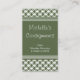 Simple et élégant carte de visite à perles raffinées en vert trèfle. Ce charmant carte de visite serait un choix merveilleux pour les propriétaires d'une petite entreprise dans des secteurs tels que les boutiques, antiquités, magasins de consignation et autres magasins de détail. Il est facile de faire de cette conception votre propre. Tout ce que vous avez à faire est d'ajouter vos informations personnelles dans les champs fournis. Pour personnaliser davantage ce design, cliquez sur le bouton "Customiser!" où vous pouvez modifier les polices et les couleurs du texte.